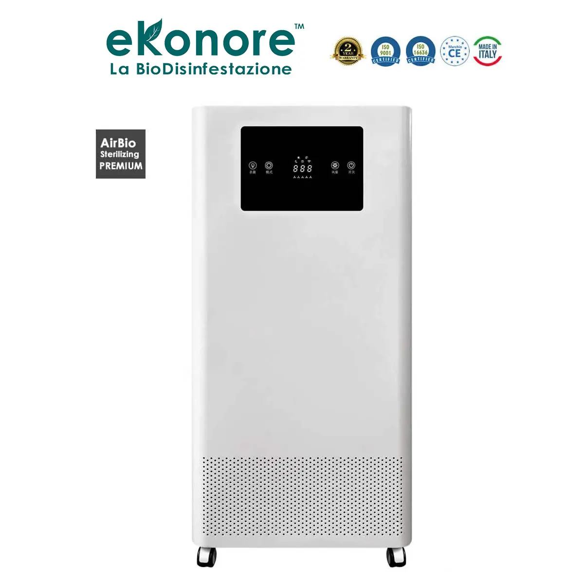 AirBio Premium sfrutta un sistema di filtrazione di ultima generazione e ben 4 tecnologie (filtro HEPA, plasma freddo, ionizzazione e lampada UVC) per sconfiggere il 99,9% di batteri, muffe e funghi presenti nell’ambiente circostante. E’ in grado di coprire spazi molti ampi (fino a 150 m²!) e garantisce una protezione lungo l’intero arco della giornata. E’ dotato di un display touch intelligente facile e intuitivo: grazie ad esso potrai controllare la qualità dell’aria in tempo reale e da remoto.